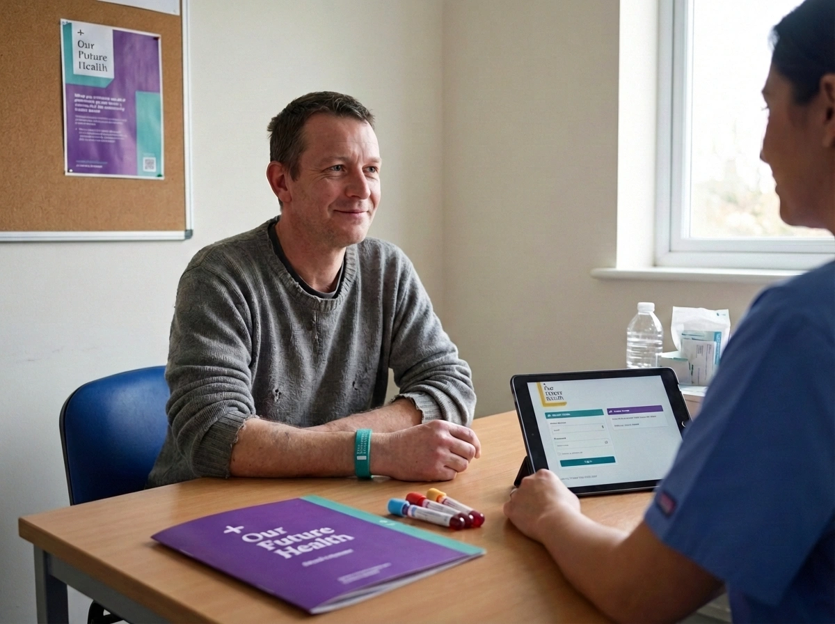 Our Future Health recruits volunteers across the UK to build the world's most detailed picture of population health. By bringing together health data, blood samples, and lifestyle information from up to five million people, the programme creates a resource researchers can use to discover how diseases begin and progress in different populations. The programme addresses a fundamental gap in healthcare. Too often, diseases are detected only when symptoms appear. Our Future Health enables researchers to identify patterns earlier, develop better prevention strategies, and create treatments that work for people from all backgrounds. Volunteers receive health information including blood pressure readings and future disease risk assessments.